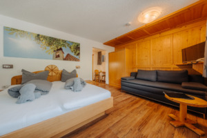 Unsere größte Wohnung liegt im 1. Obergeschoss, ist für 9 Personen ausgestattet und hat 90m².