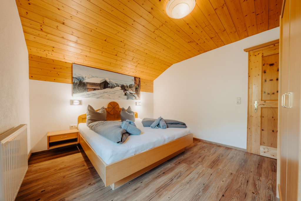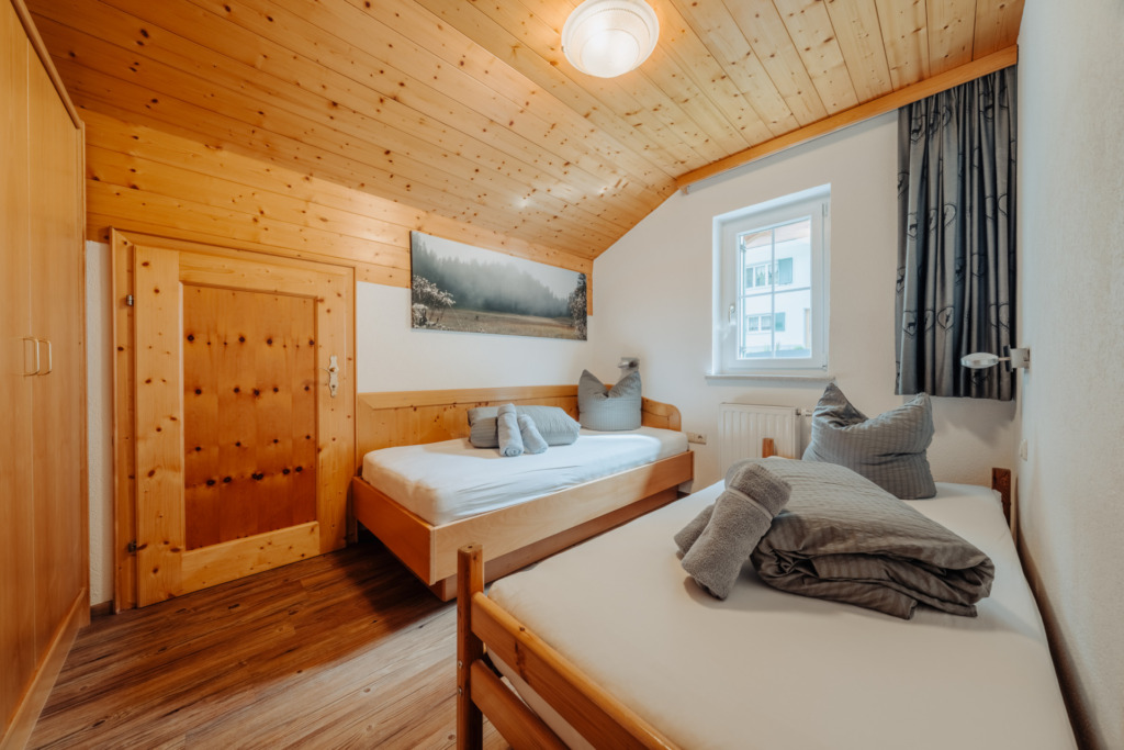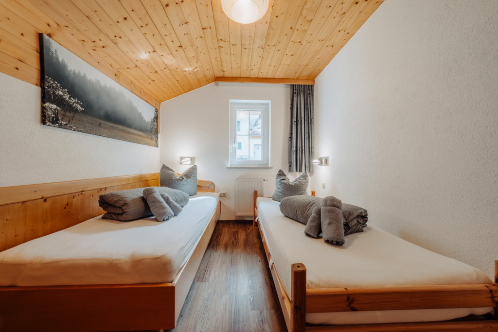 • 2 Schlafzimmer (Doppelbett, 2 Einzelbetten – Zusatzbett ist ein Hochbett) mit Bettwäsche