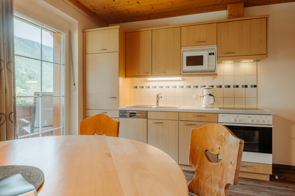 • Küchenzeile mit Essbereich, Kühlschrank, Cerankochfeld, Geschirrspüler,Backoffen, Kaffeemaschine, Toaster, Wasserkocher, Mikrowelle, Geschirrtücher