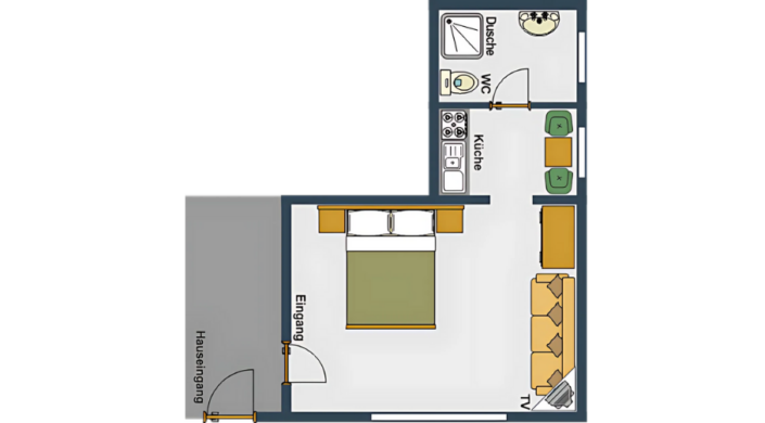 Unsere kleinste Wohnung liegt ebenerdig im Erdgeschoss, ist für 2-4 Personen ausgestattet und hat 35m²